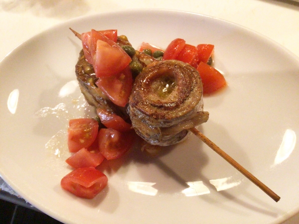 タチウオのソテー フレッシュトマトソース新メニューです骨取りのタチウオは食べやすくロール状にして串...
